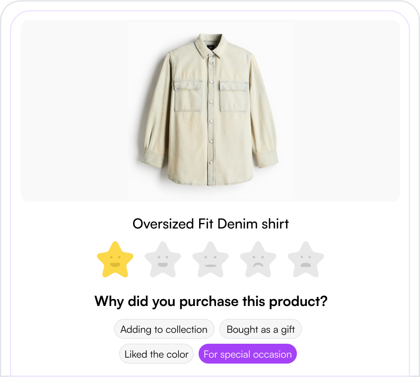 Choose from in-built templates or let GenAI auto-craft questions that speak your customers’ language, tailoring tone, length, and wording to each persona, vertical, or micro-segment for crystal-clear, relevant answers.