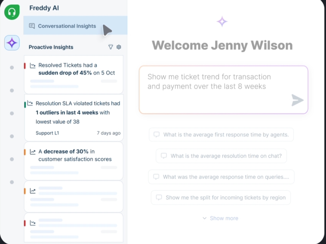 - Freddy AI simplifies common support tasks, such as ticket classification and routine action triggers. It’s designed to enable non-technical teams to use AI meaningfully without setting up a large-scale automation framework.