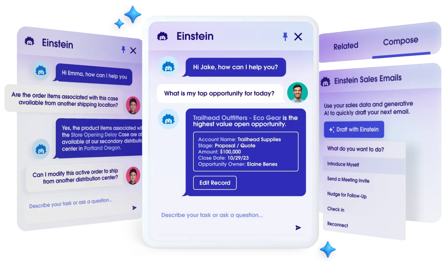 Businesses can use Einstein Bots for cross-channel self-service. Conversational AI can be immediately included into workflows to divert common questions and provide agents with insights. The Agentforce 360 platform takes this further by enabling autonomous AI agents that automate entire tasks and integrate with external systems.