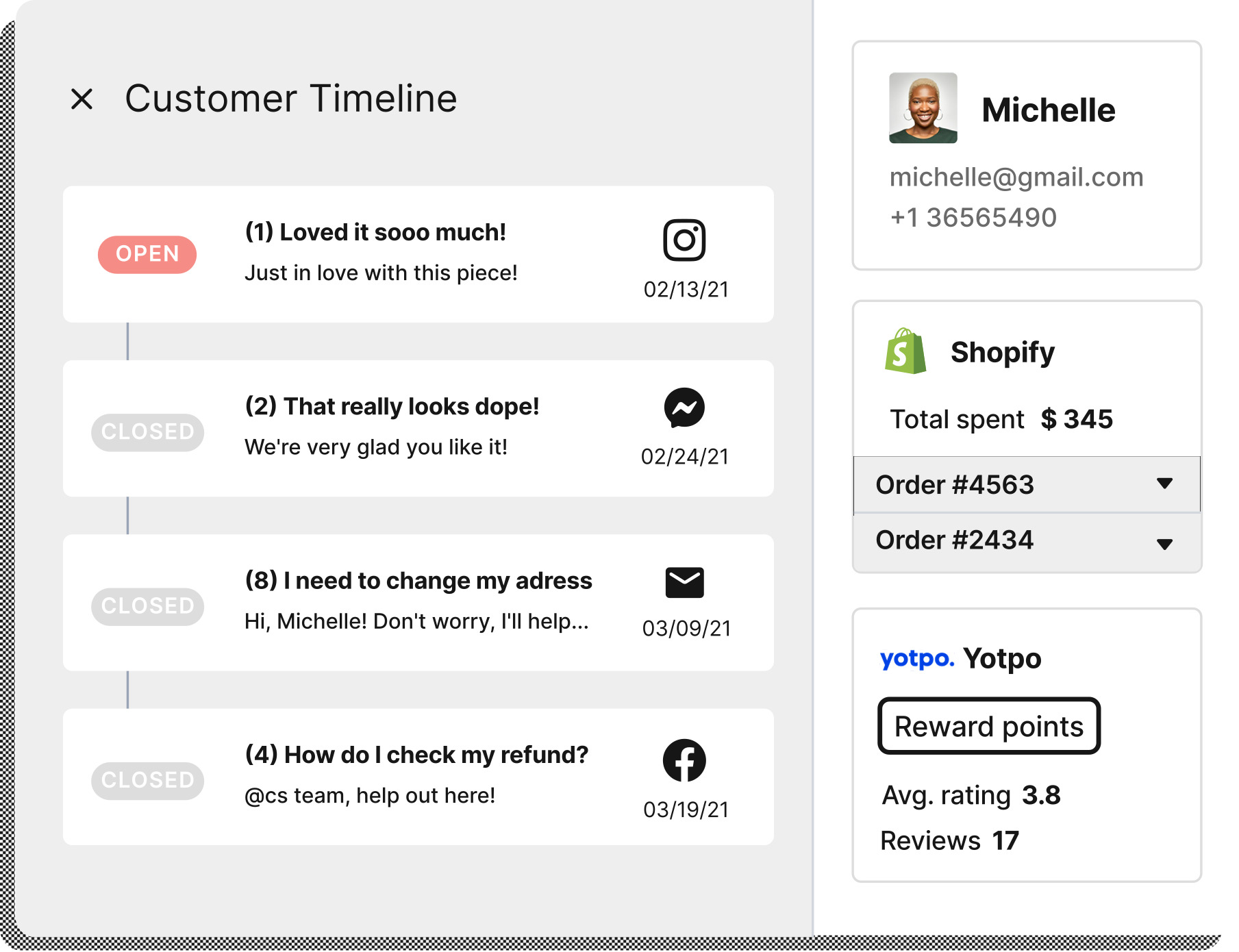E-commerce service teams that manage multiple support channels and want direct access to customer and order details.