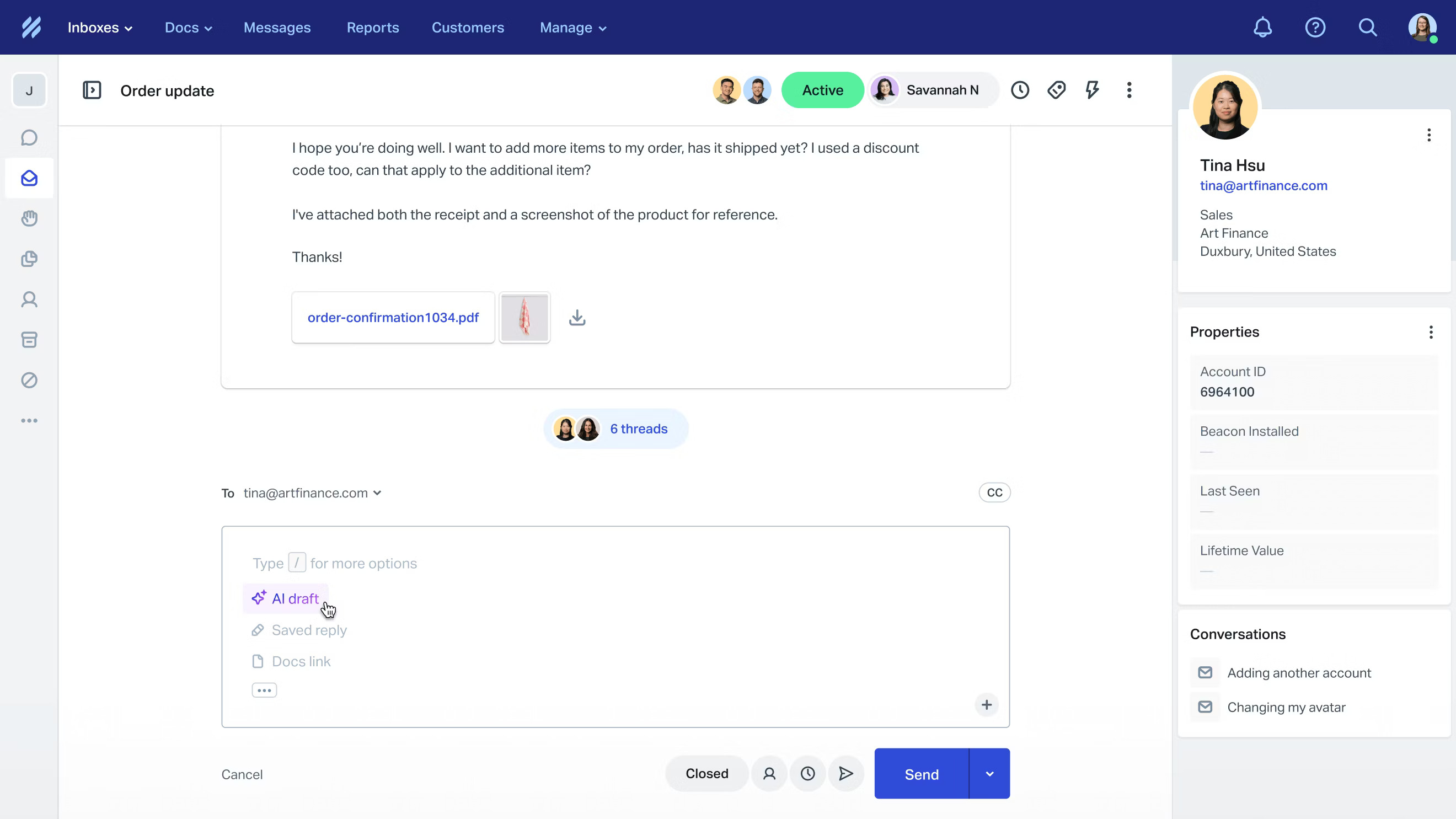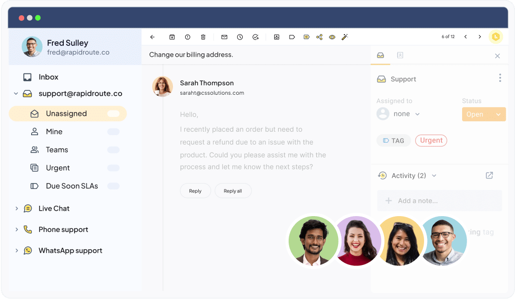 Teams that handle a mix of email and chat interactions and want one shared place to manage all customer conversations.