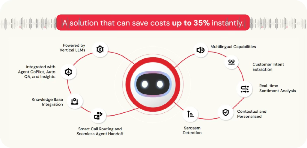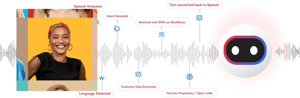 Our voice bot is a result of in-house LLMs trained on billions of vertical-specific customer interactions and intensive grounding, leading to hyperpersonalized and contextual responses, with no hallucinations.