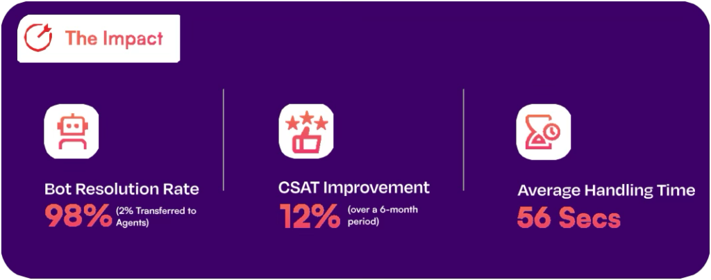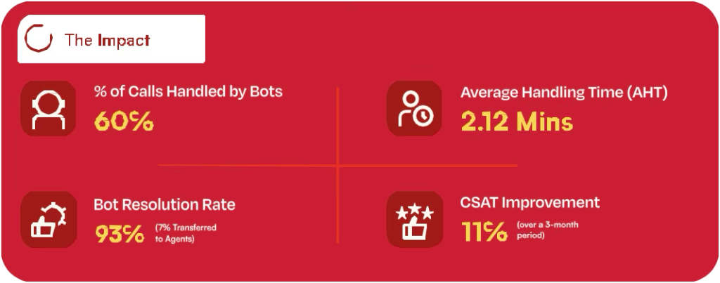 - Our voice bot can handle calls ~3X faster than an agent. (AHT reduced by more than 80%)