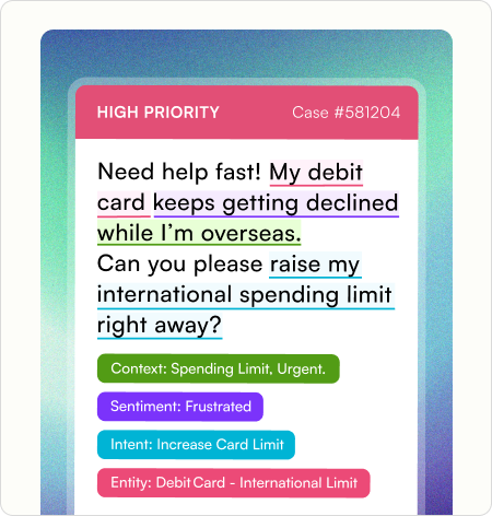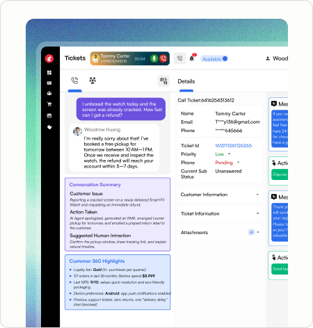 - Handle high-volume queries on cards, loans, disputes, and failed transactions with smart ticketing, routing, and AI agents.