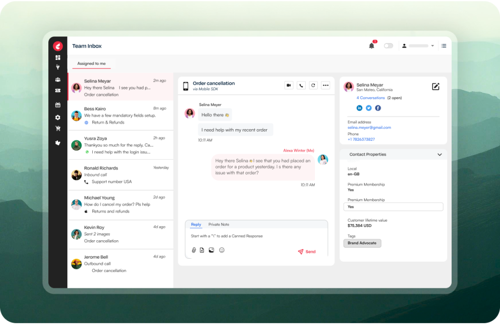 Show full conversation history, customer details, SLAs and internal notes in one unified, collaborative agent workspace.